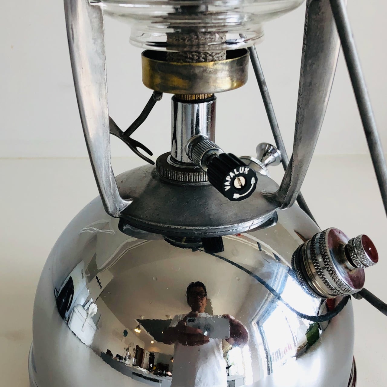 またこの時期のノブには、Vapaluxの刻印がなく左右の矢印だけの刻印のノブを持つ個体が存在しますが、本機のノブはVapaluxの刻印もあります。