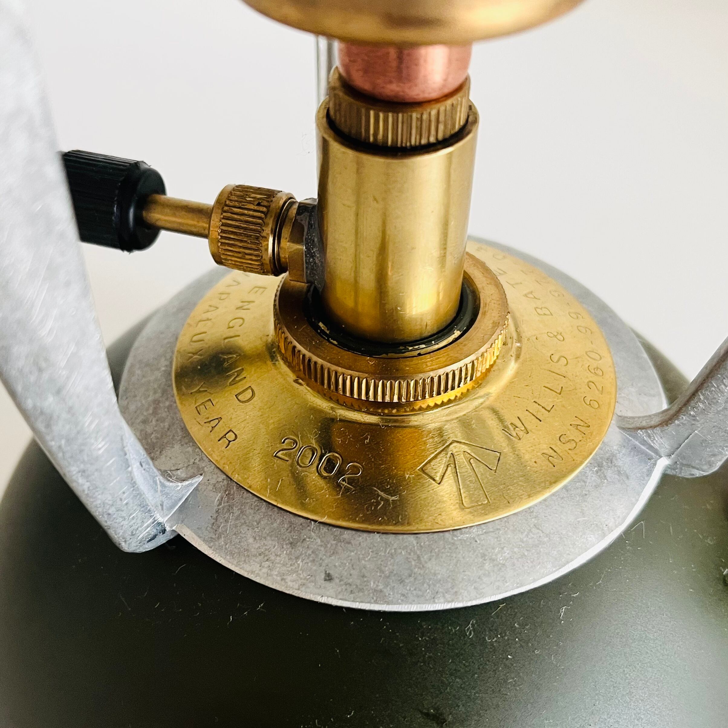 ブロードアローと2002年の刻印が入ったイヤープレート(ブラス)が取り付けてあり、製造がWillis and BatesからBairstow Brothersに移行した後に製造されたタイプです。
